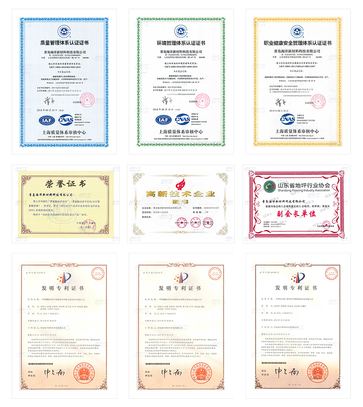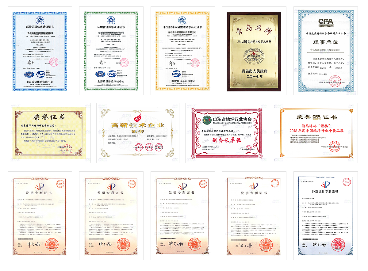 (證書編號:00320Q30269R1S/QD)、ISO14001:2015環境管理體系認證(證書編號:00320E20134R1S)、ISO45001:2018職業健康安全管理體系認證(證書編號:00322S30152R1S)、獲得山東省專精特新中小企業、瑯琊榜工業品牌上榜企業等稱號。公司自主研發的飲用水管道聚脲防腐涂料通過了英國飲用水安全WRAS實驗室認證、法國ACS衛生認證機構檢測報告及其他權威檢測機構SGS、天祥集團等檢測認證,產品暢銷國內外,遠銷歐美亞。公司積累了大量的聚氨酯產品的研發應用經驗。其中無溶劑聚氨酯地坪系列產品,將聚氨酯材料優異的彈性、耐磨、防腐、耐候等性能引入地坪系統,解決傳統地坪材料的諸多別斷,為地坪行業提供更完善的聚氨酯地坪配套解決方案。