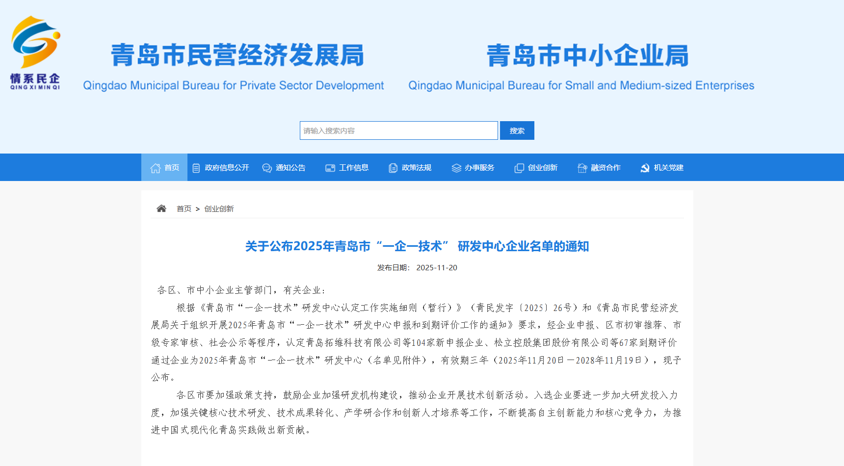 11月20日,2025年青島市“一企一技術(shù)”研發(fā)中心認定名單正式公布。青島海洋新材料科技有限公司(AMMT海美特)憑借在改性聚脲技術(shù)的深厚積累與創(chuàng)新成果成功獲得認定,標志著企業(yè)在高分子材料領(lǐng)域的專業(yè)實力和技術(shù)創(chuàng)新水平獲得官方認可,是海美特技術(shù)創(chuàng)新道路上的又一重要里程碑。