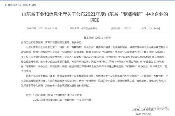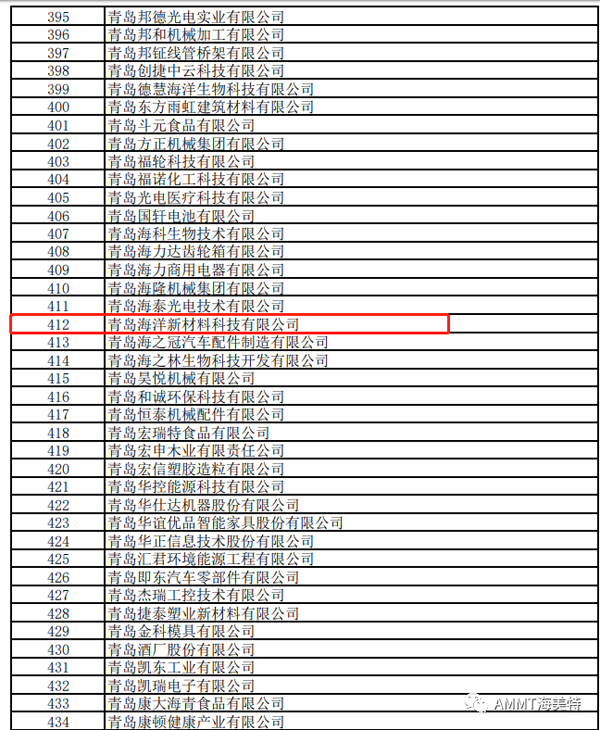 2021年8月,青島海洋新材料科技有限公司(AMMT海美特)獲批2021年度山東省“專精特新”中小企業榮譽稱號!