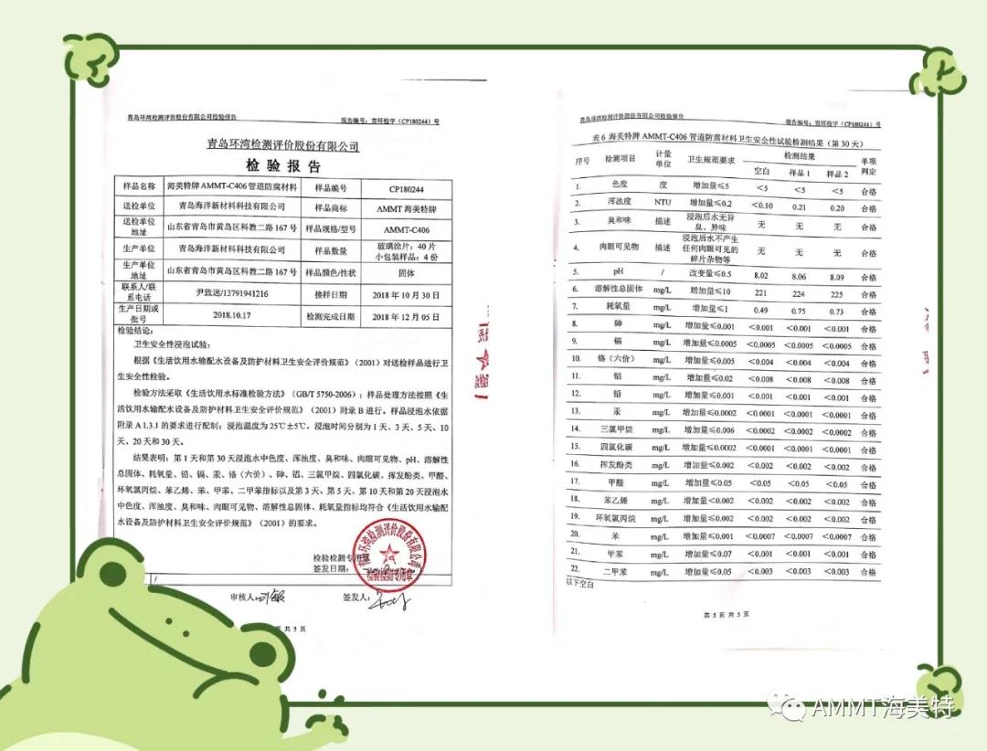 AMMT聚脲系列產品由半預聚體、聚醚、擴鏈劑等原料組成,綠色環保,100%固含量,零VOC,經過現場噴涂成型的第三代聚脲彈性體。目前主要產品有:AMMT-021管道防腐材料、AMMT-022聚脲防腐材料、AMMT-030高性能聚脲防水材料等。其中管道防腐材料,通過了衛生部飲用水檢測和英國皇家水務飲用水認證,達到涉及飲用水的標準。