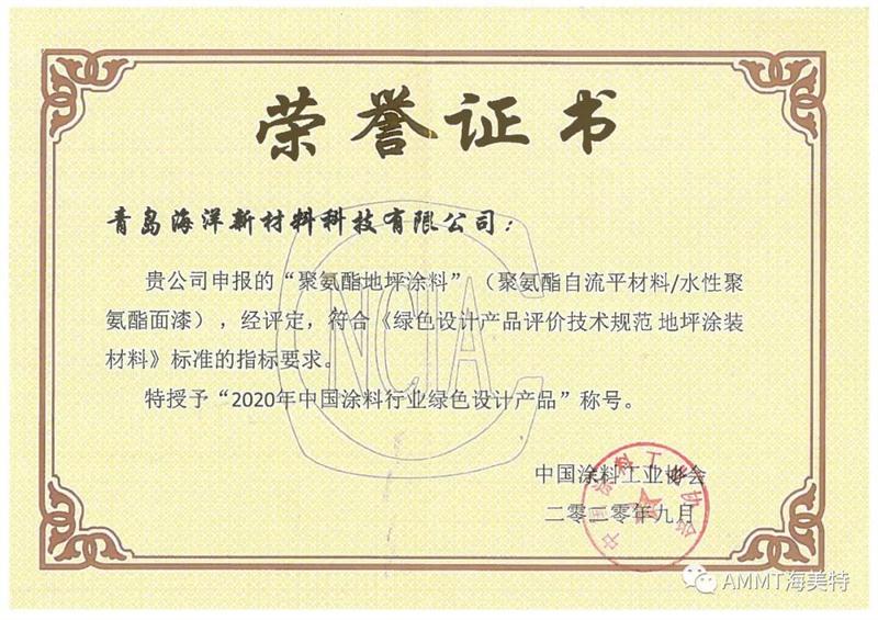 青島海洋新材料科技有限公司深耕聚脲聚氨酯行業多年,一直致力于研發生產全體系的綠色環保的產品。公司“聚氨酯地坪涂料”產品可以在此次評價中順利通過2020年中國涂料行業綠色產品的評價,是公司獲得政府支持與消費者信任,順利開展綠色營銷的重要保證。