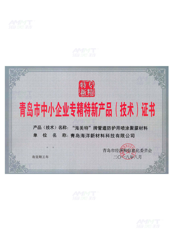 青島市中小企業(yè)專精特新產(chǎn)品(技術(shù))證書