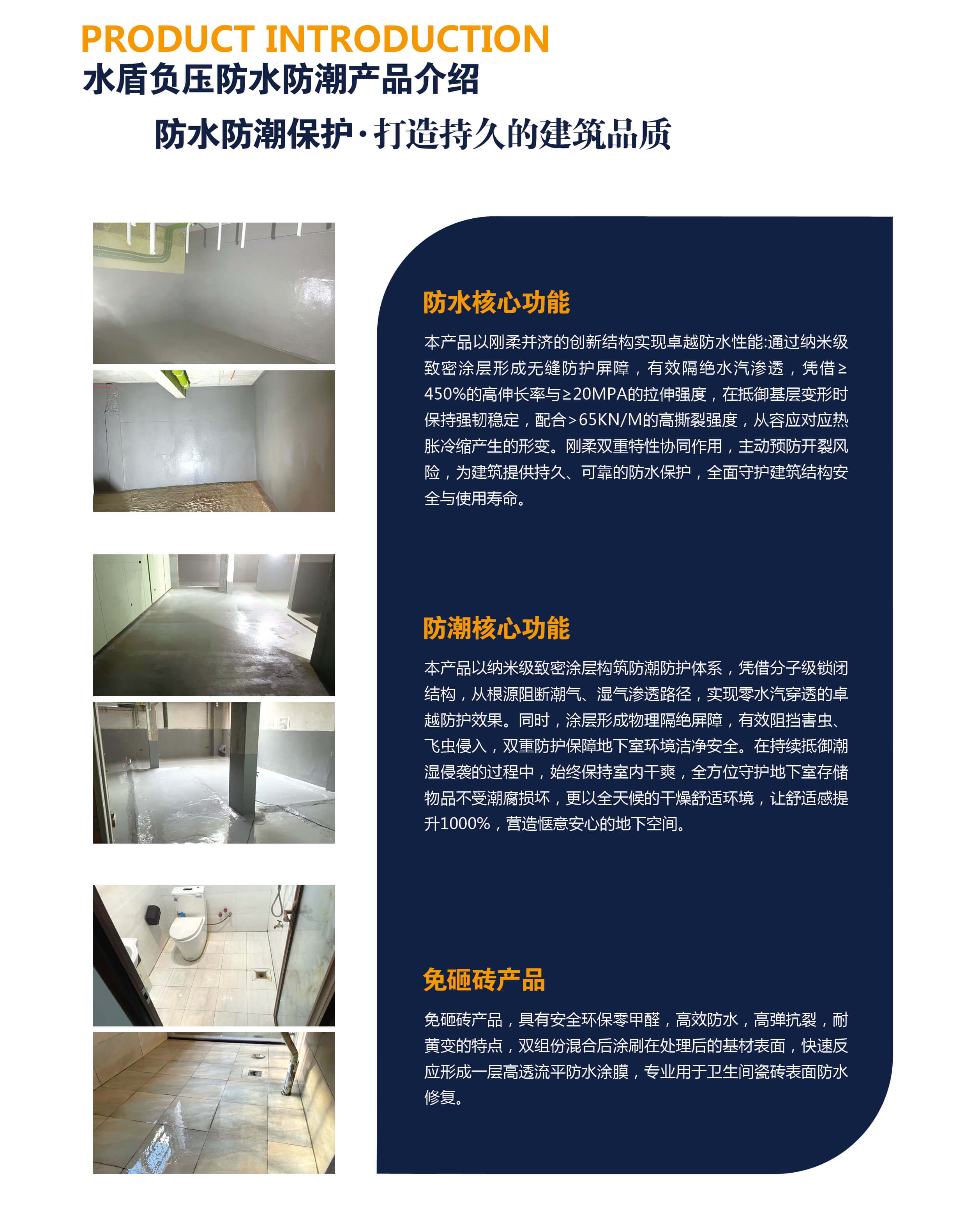 水盾地下室負壓防水防潮施工體系專為高端別墅地下室設汁,精準解決負壓環境下的滲漏、濕難題。為高端住宅地下空間構建可靠的防水防潮屏障,以卓越品質守護地下空間干爽舒適。