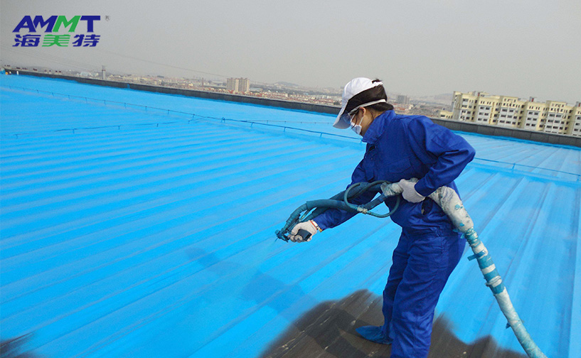 海美特自主研發的第三代噴涂聚脲彈性體材料,通過A組分改性半預聚體與B組分端氨基聚醚、胺擴鏈劑、納米填料、顏料組成,現場噴涂成型。